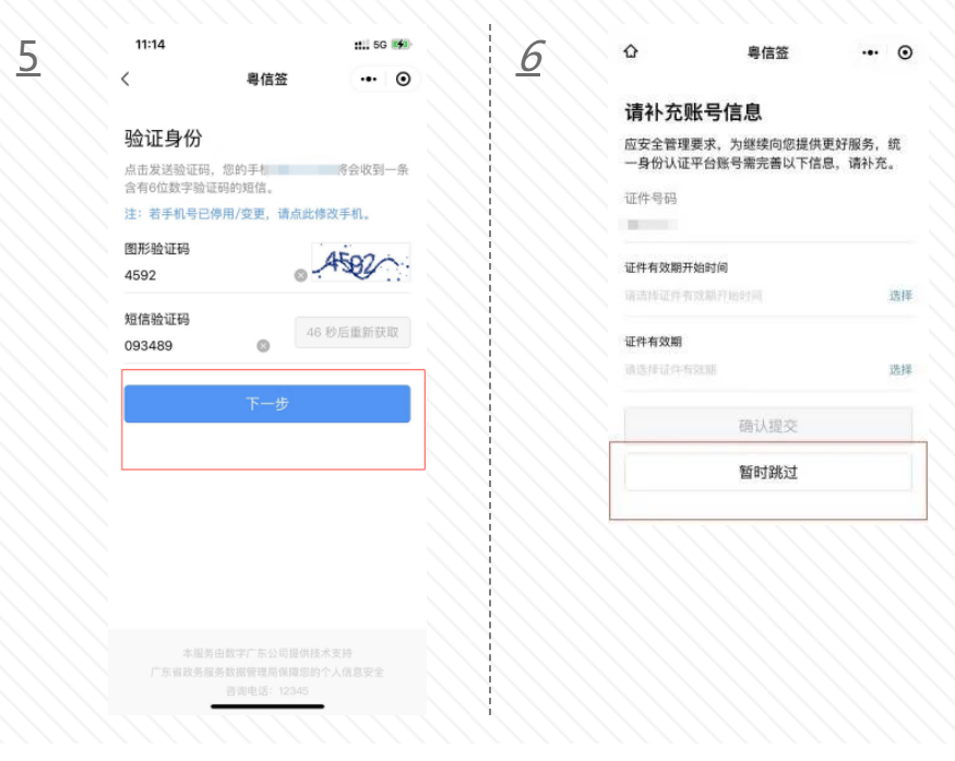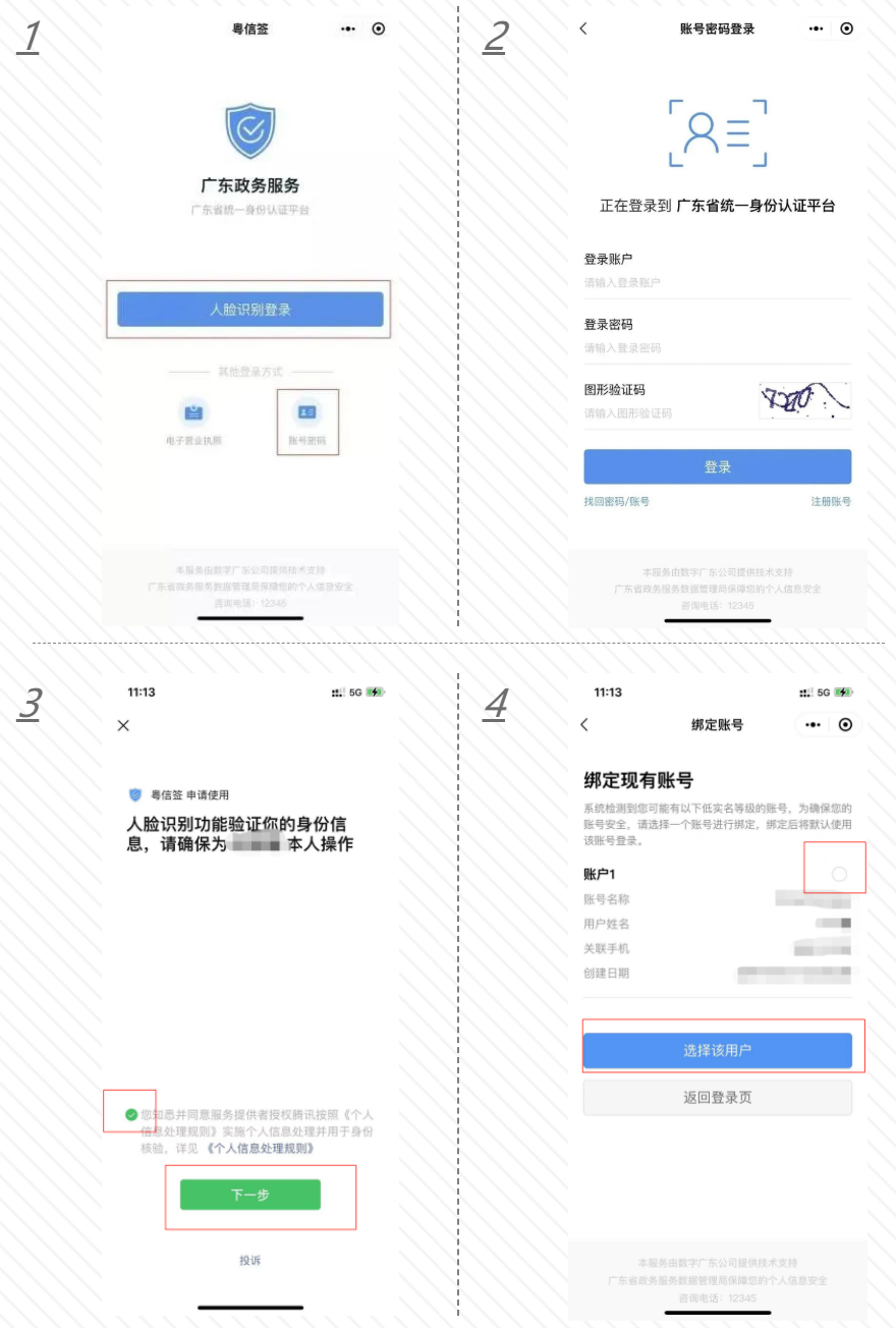 注意:首次进入需填写本人身份信息→绑定现有账户→手机验证→绑定成功→设置密码→身份证有效期可选择暂时跳过。