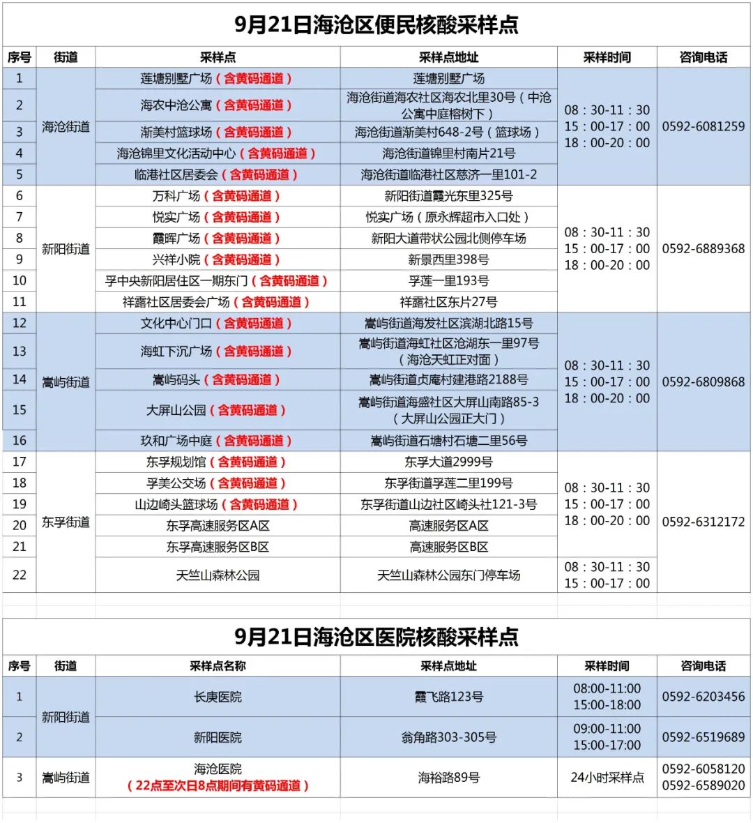 2022年9月21日厦门六区核酸采样点汇总 厦门市核酸采集点