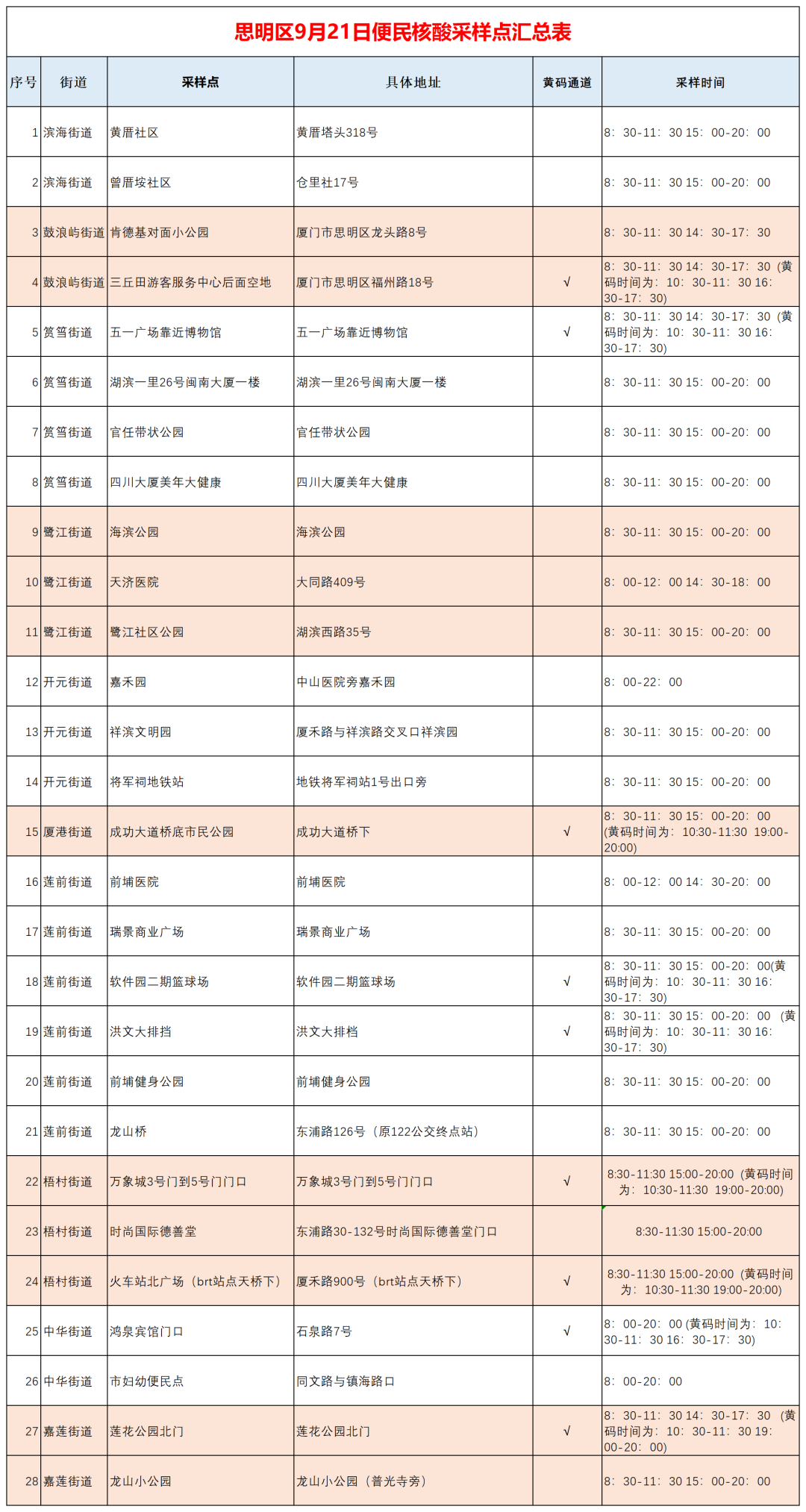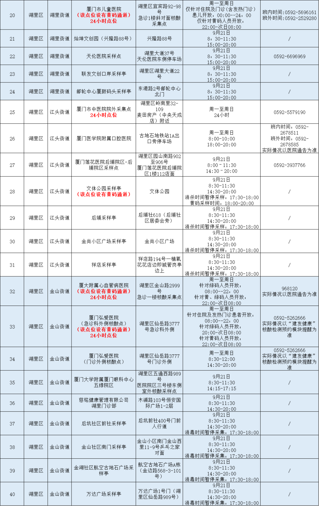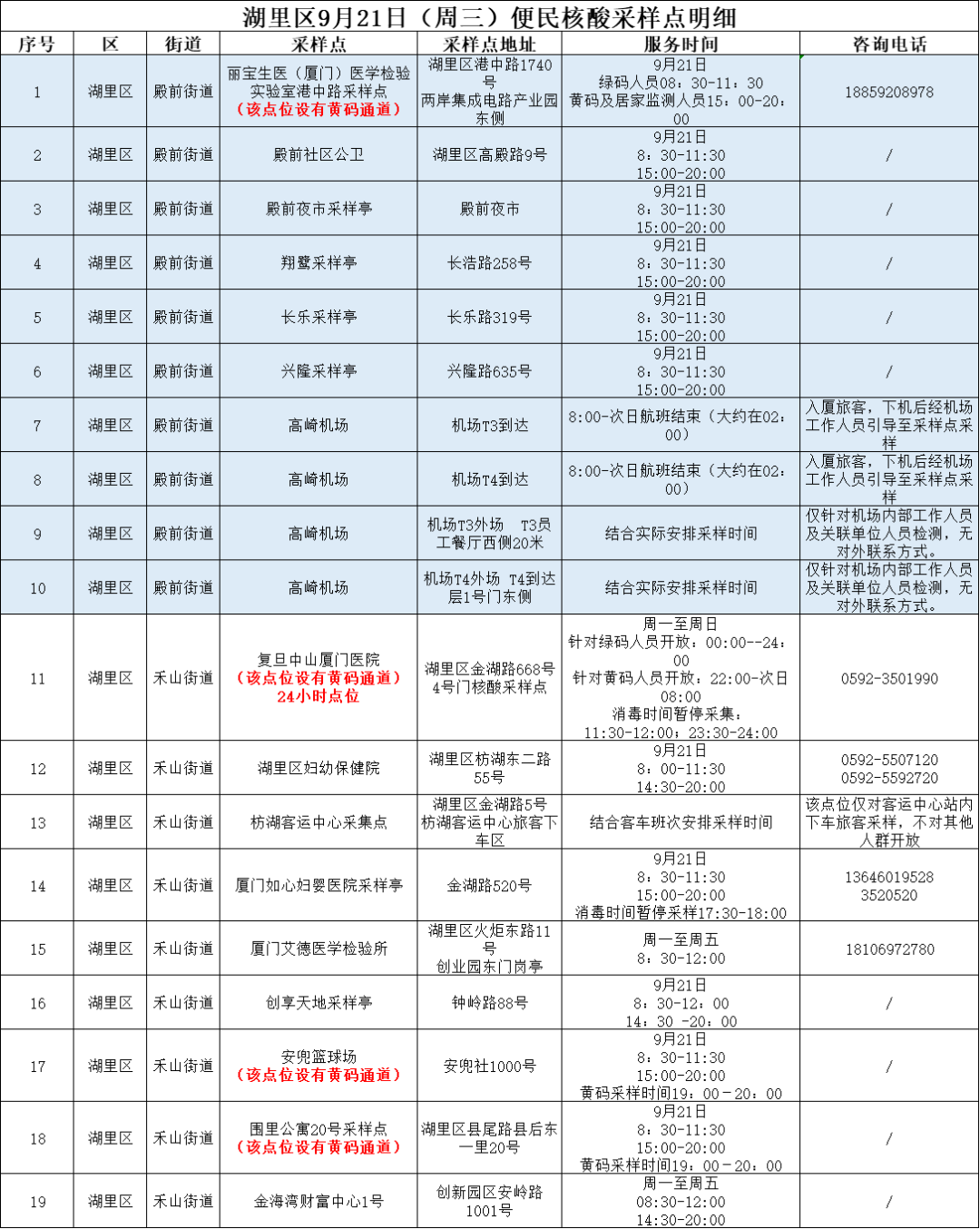 9月21日厦门免费核酸采样点汇总