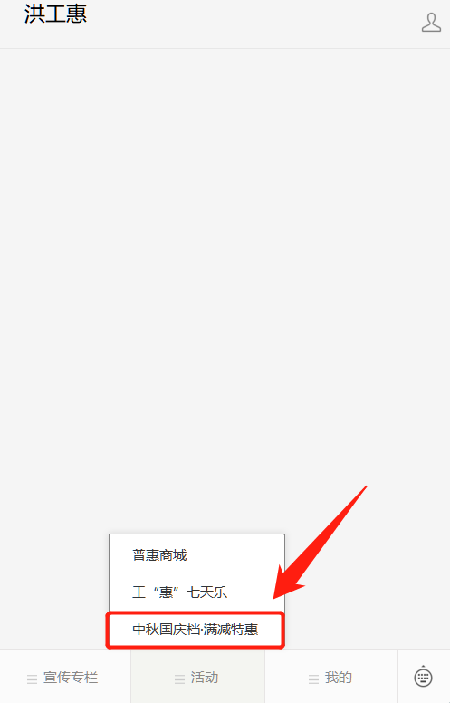 第二步:点击底部菜单栏【活动】-选择【中秋国庆档·满减特惠】,进入活动页面;
