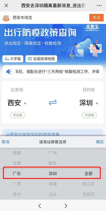 第二步:进入界面查看,查看西安去往目的地城市相关规定。