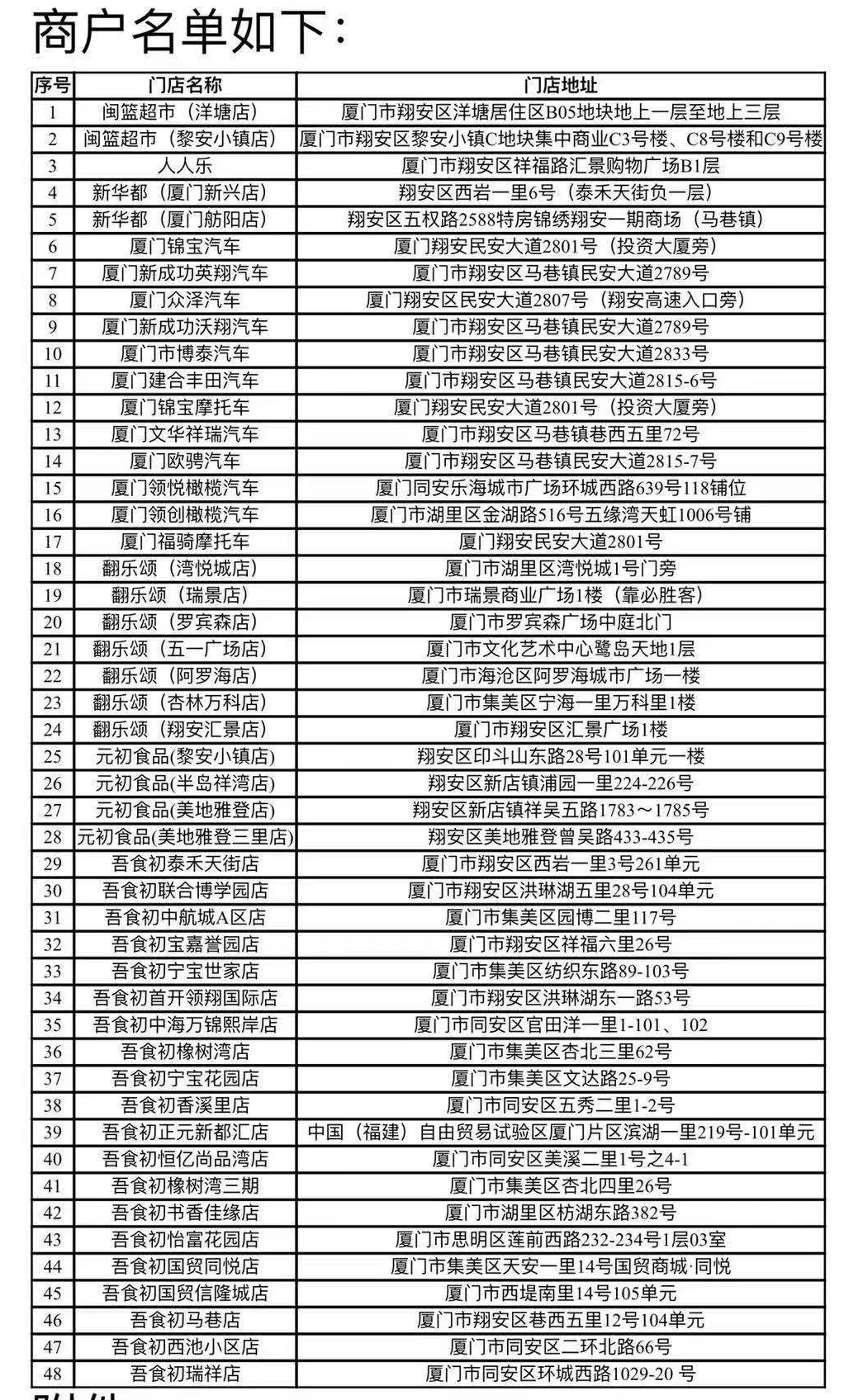 可用商户名单
