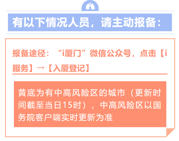 有涉疫地区(见下表)旅居史的入(返)厦人员,需主动向社区、单位或酒店报备,根据出发地和途经地疫情风险等级实施分类管理: