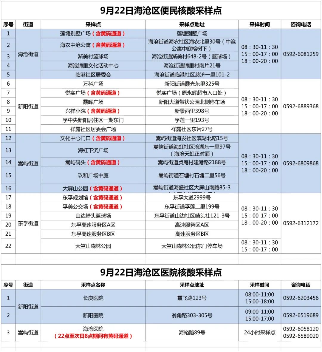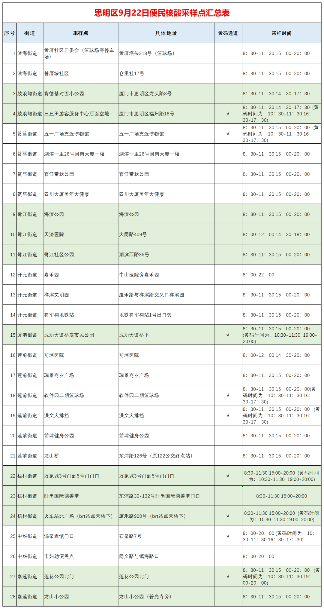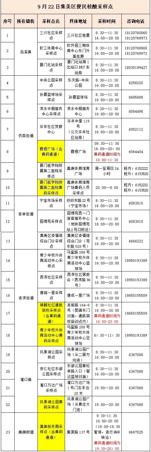 9月22日厦门免费核酸采样点汇总