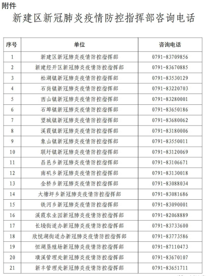 附件:新建区新冠肺炎疫情防控指挥部咨询电话
