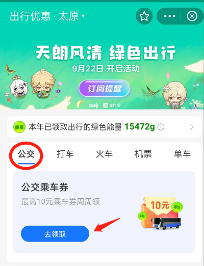 登录“支付宝APP”,在首页选择“出行”,点击进入后,点击“出行优惠”,出现“公交乘车券”,点击“去领取”,获取优惠券,使用时打开支付宝,首页点击“出行”,选择“公交”,乘车自动使用。
