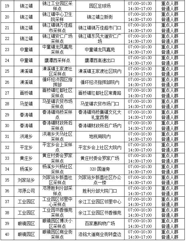 余江区常态化核酸检测采样点位合集