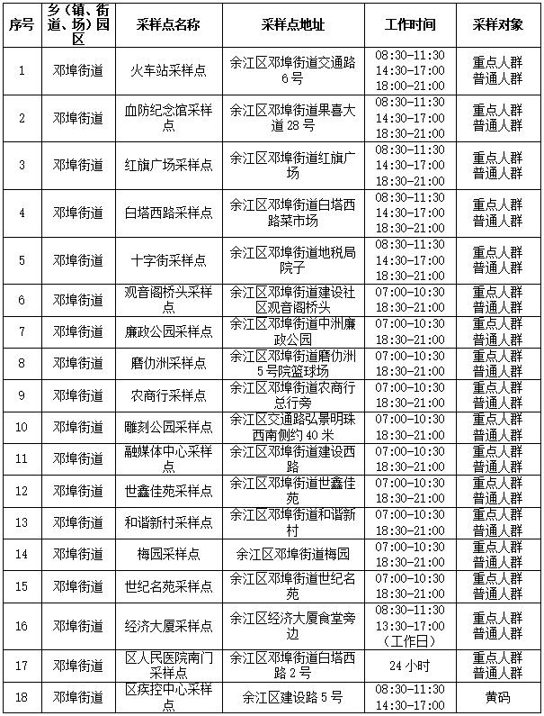 附件:余江区常态化核酸检测采样点位一览表