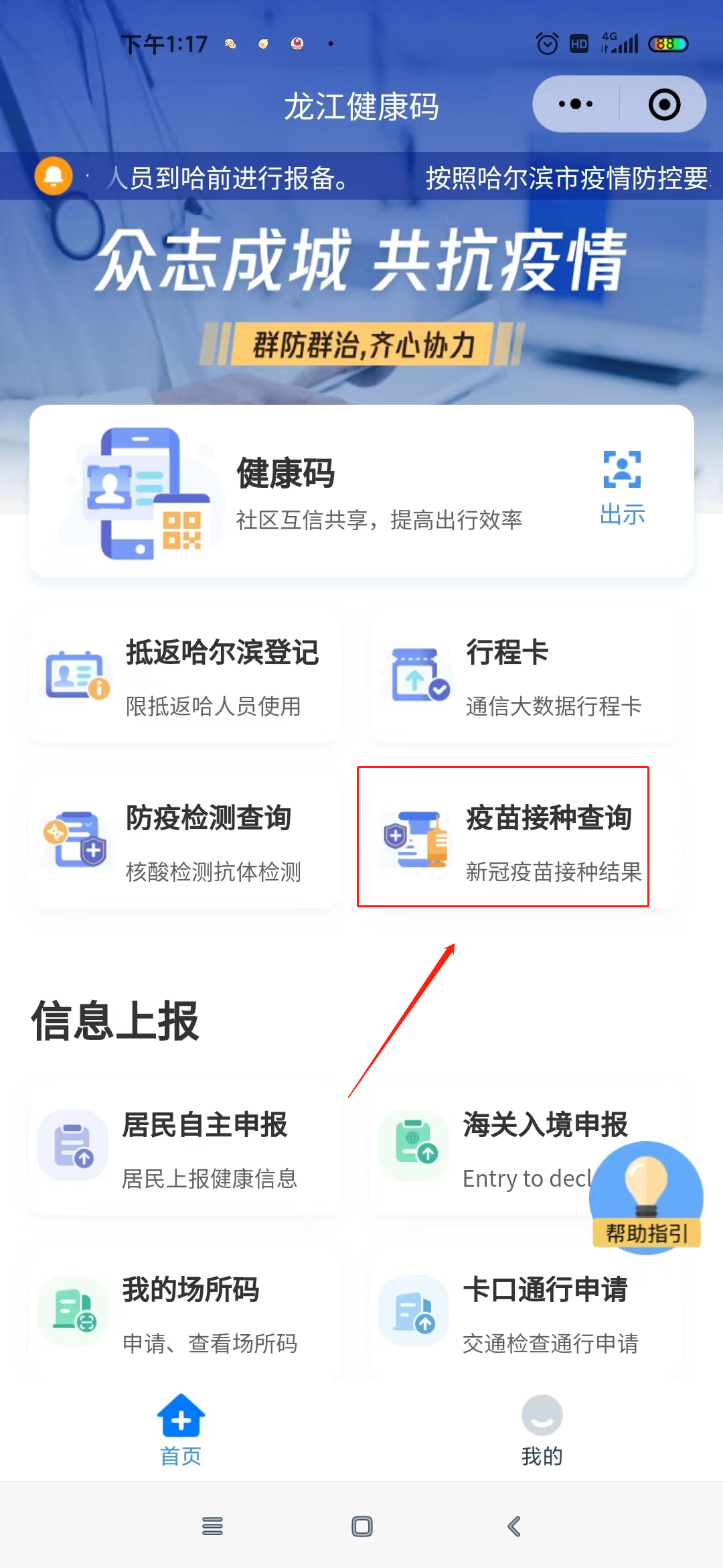 1、微信扫一扫图片进入“龙江健康码”小程序