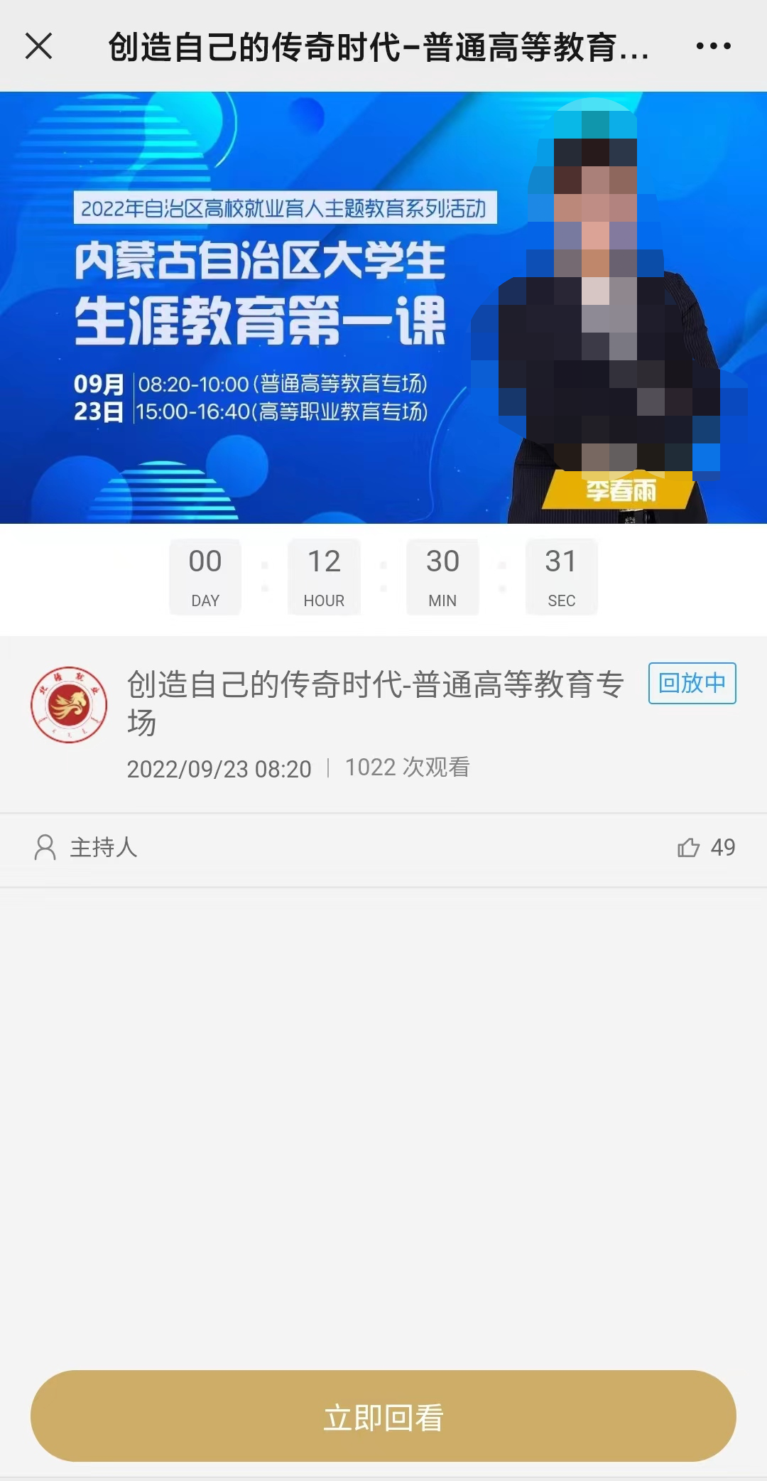 2022内蒙古自治区大学生生涯教育第一课直播+回放入口