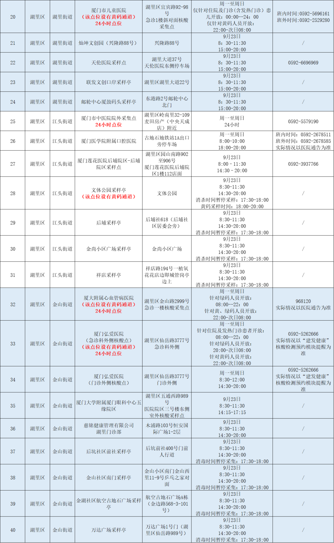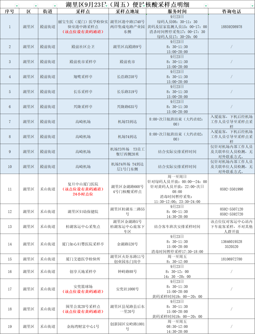 9月23日厦门免费核酸采样点汇总