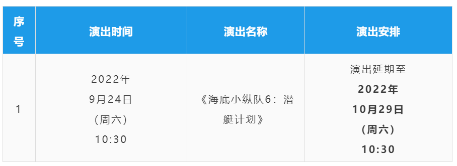 重要通知丨关于《海底小纵队6:潜艇计划》演出延期