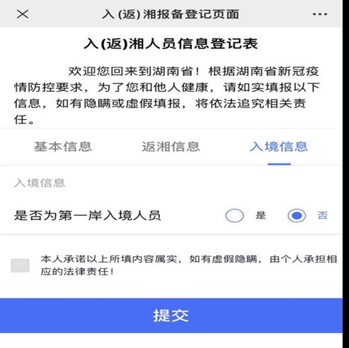 6、随后进入“入境信息”界面,按要求填写即可,确认无误后,勾选承诺方框,进行提交;