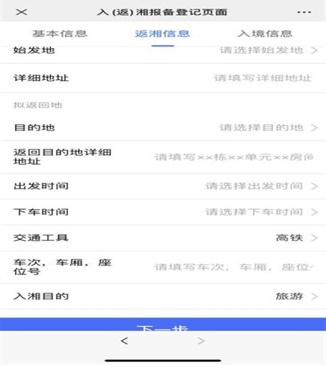 5、进入“返乡信息”界面,按要求填写,并点击下一步;