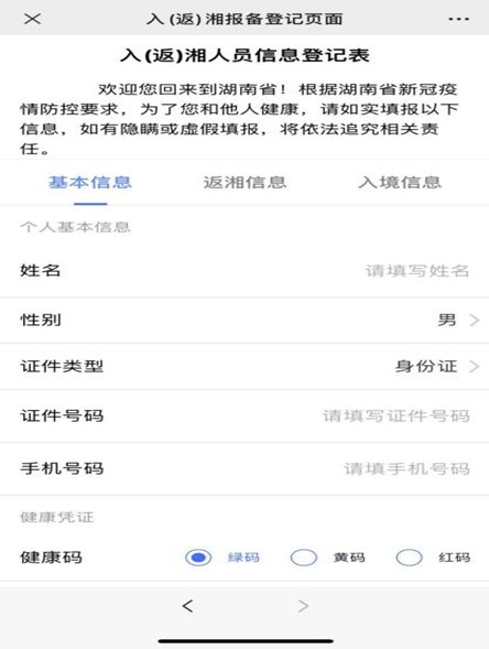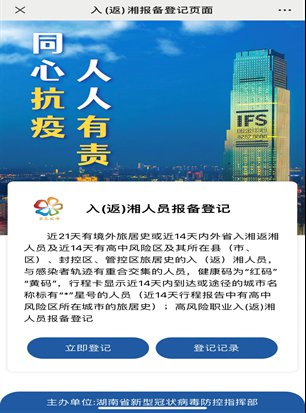 1、在湖南居民健康卡“便民服务”中点击“入湘报备”;