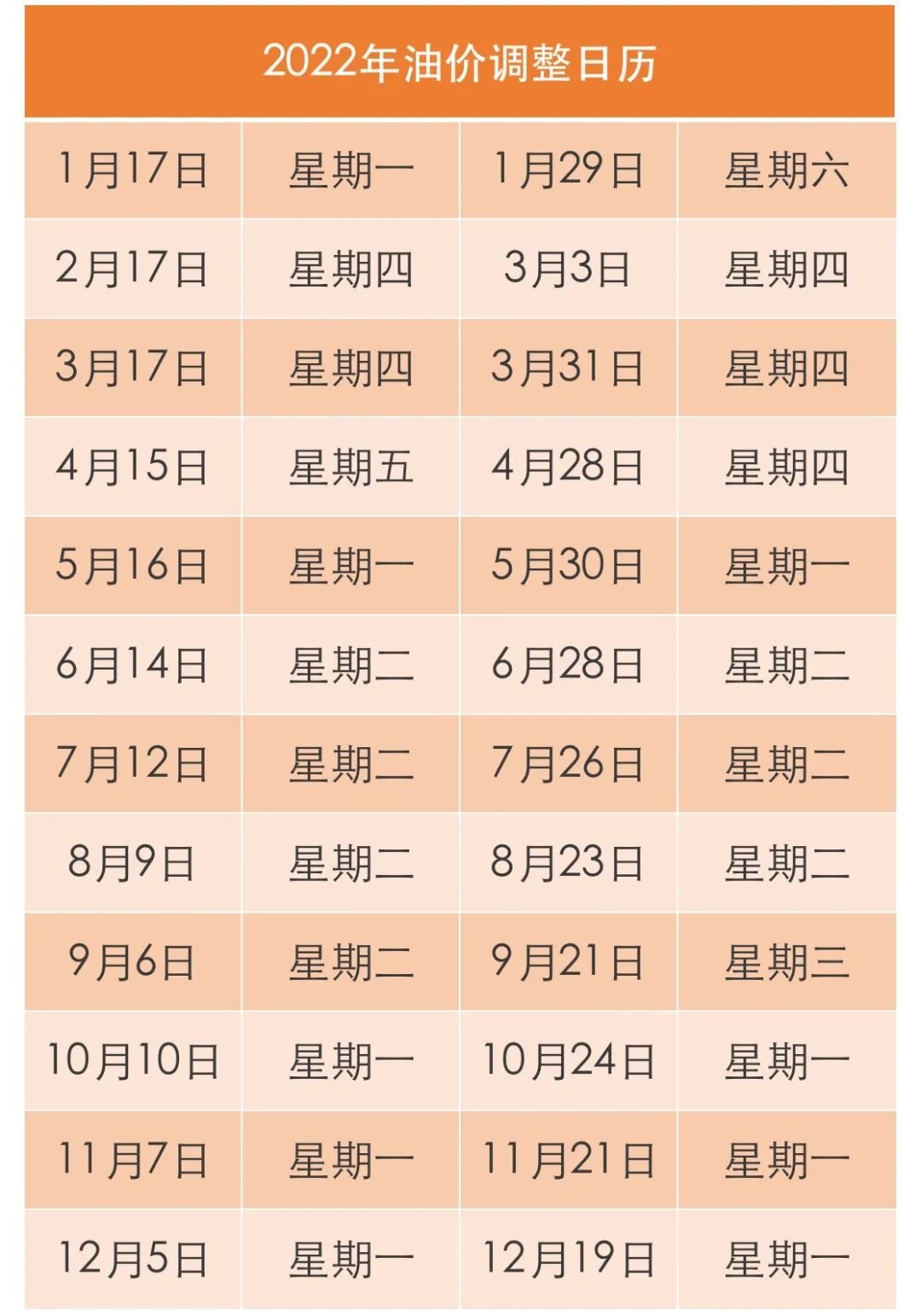 根据国家节假日安排,以及国内成品油零售价调价规则,2022年我国成品油共迎24轮调价窗口期,首次调整时间为1月17日24时,后期调整为10个工作日一调。