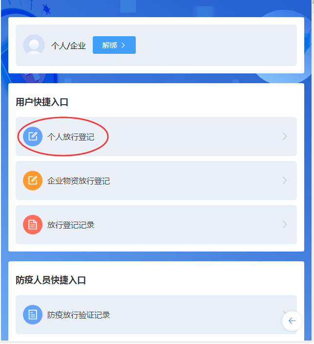 ①个人放行