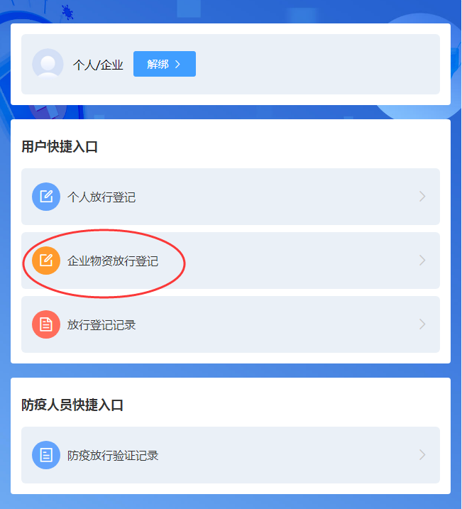 ②企业物资放行