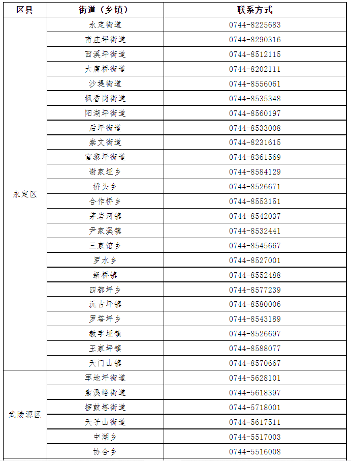各街道(乡镇)联系电话