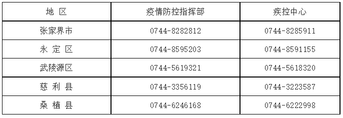 张家界市市县两级疫情防控指挥部和疾控中心24小时值班电话