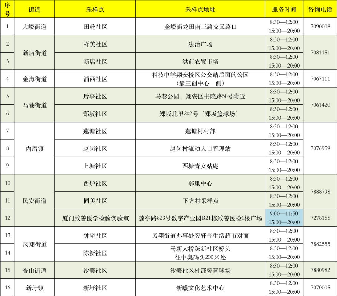 翔安区便民核酸采样点