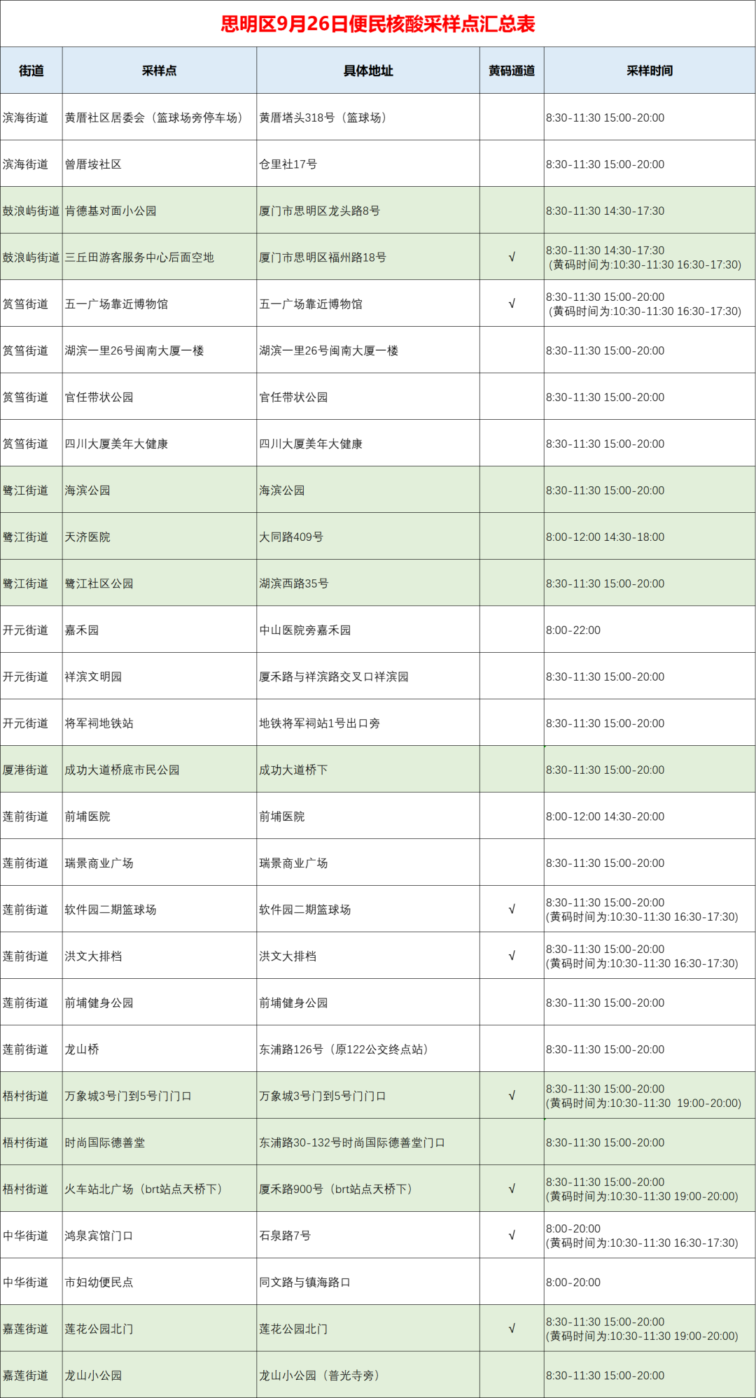 9月26日厦门免费核酸采样点汇总