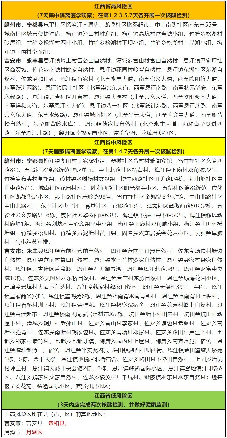 一、江西省省内流动人员健康管理措施清单(更新至2022年9月25日15时)