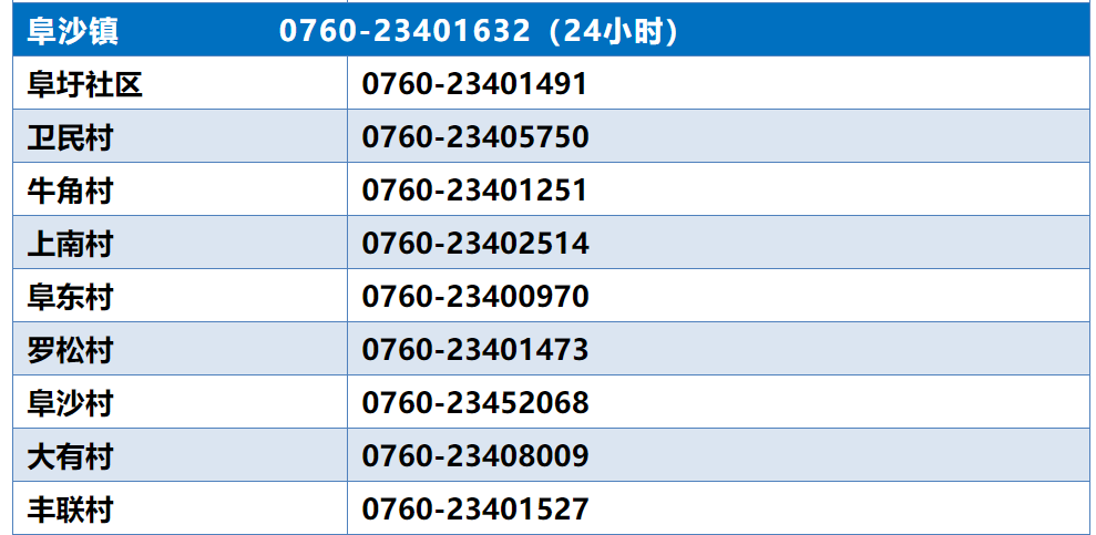 中山阜沙镇报备电话
