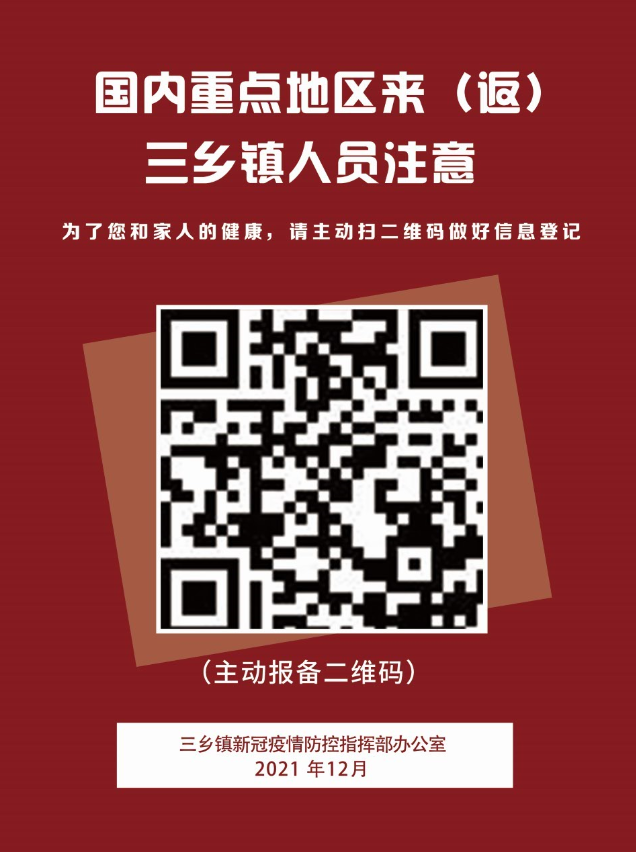 2.疫情防控人人有责。市民如果有特殊情况必须要离市的,请向所在单位报批或向村(社区)报备,并及时扫描填报二维码。市外来返中山人员抵达中山后第一时间主动向居住地所在村(社区)、单位或者入住的酒店(宾馆)报备,并扫描二维码如实填报,落实疫情防控相关措施。