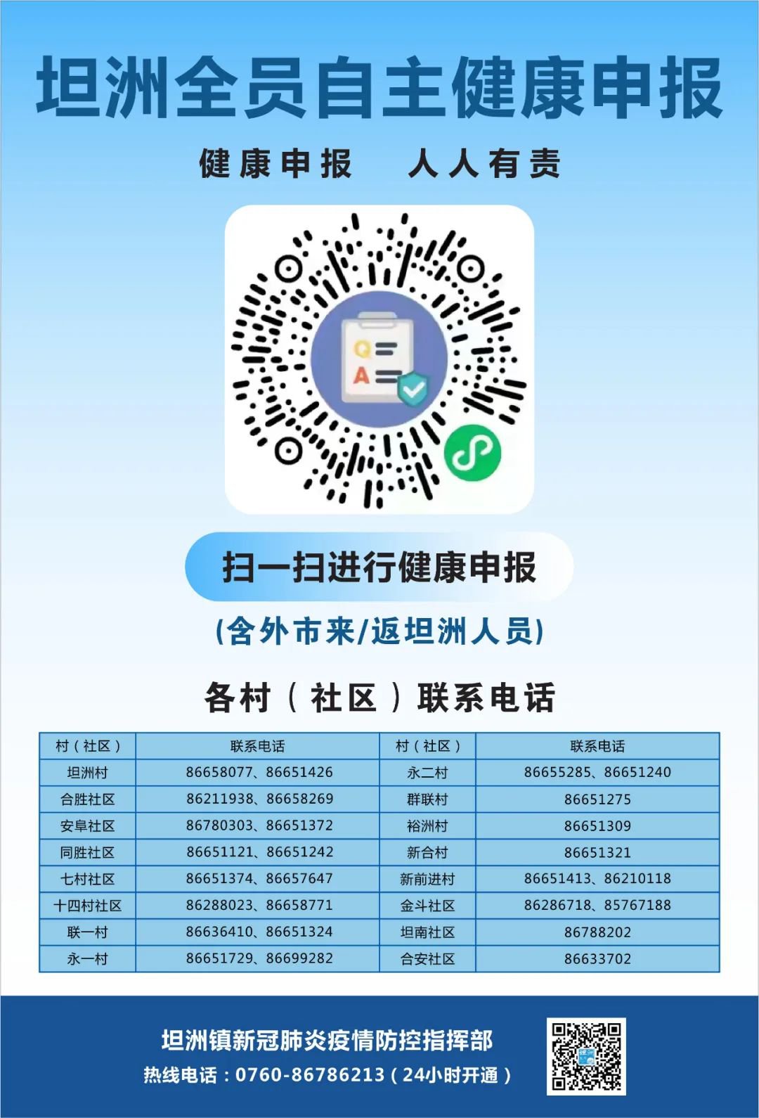 中山坦洲镇健康申报方式(电话+二维码)