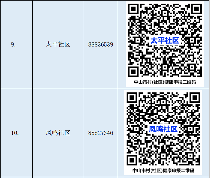 中山石岐街道自主报备方式(电话+二维码)