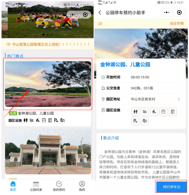 为加强金钟湖公园的疫情防控工作,优化公园周边交通秩序,五一国际劳动节假期期间,公园主管部门将在金钟湖公园实行公园预约停车措施,相关事项公告如下: