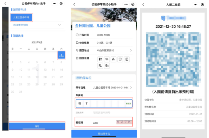市民可通过公园智慧管理小程序,登记车牌、入园时间段等信息生成预约码。已预约车辆在预约时间段内系统可自动识别快速进园,非预约车辆不允许入园停车,也不允许排队等待。