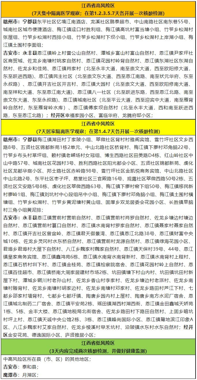 一、江西省省内流动人员健康管理措施清单(更新至2022年9月26日15时)