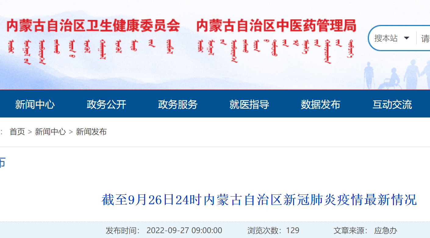 9月26日0—24时内蒙古无新增本土病例