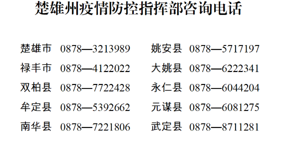 一、所有州外来(返)楚人员在入楚前,须提前24小时通过“威楚报备”小程序或电话方式向目的地县市、乡镇、社区或单位进行报备。