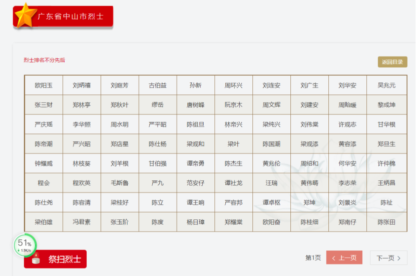 第二步:从标题行点击“烈士英名录”选择广东省“烈士英名录”→中山市→广东省中山市烈士英名录;