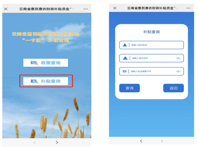 点击【补贴查询】,进入补贴查询页面,输入补贴对象姓名,身份证号和社会保障卡号可查询补贴对象补贴情况。