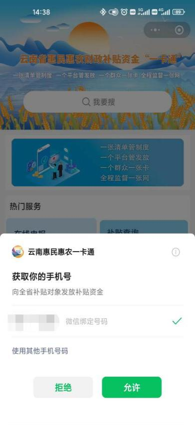 云南省惠民惠农财政补贴资金一卡通微信小程序操作手册