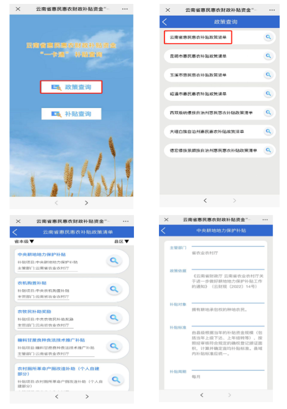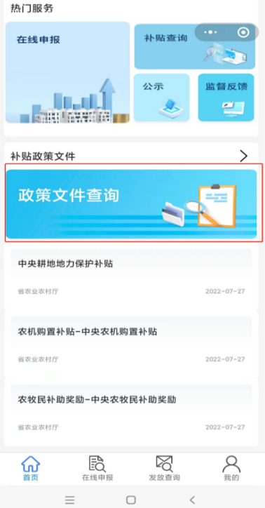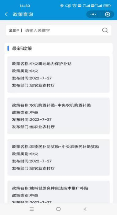 点击【政策查询】,进入政策查询页面,可选择补贴项目政策进行查看。