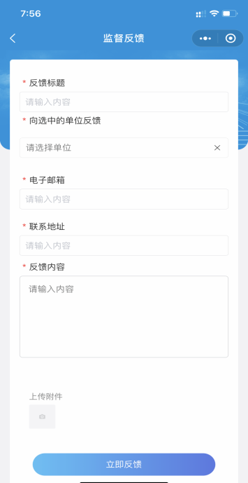 点击【监督反馈】,查看反馈须知点击【去反馈】,在监督反馈页面填写完信息后点击【立即反馈】。
