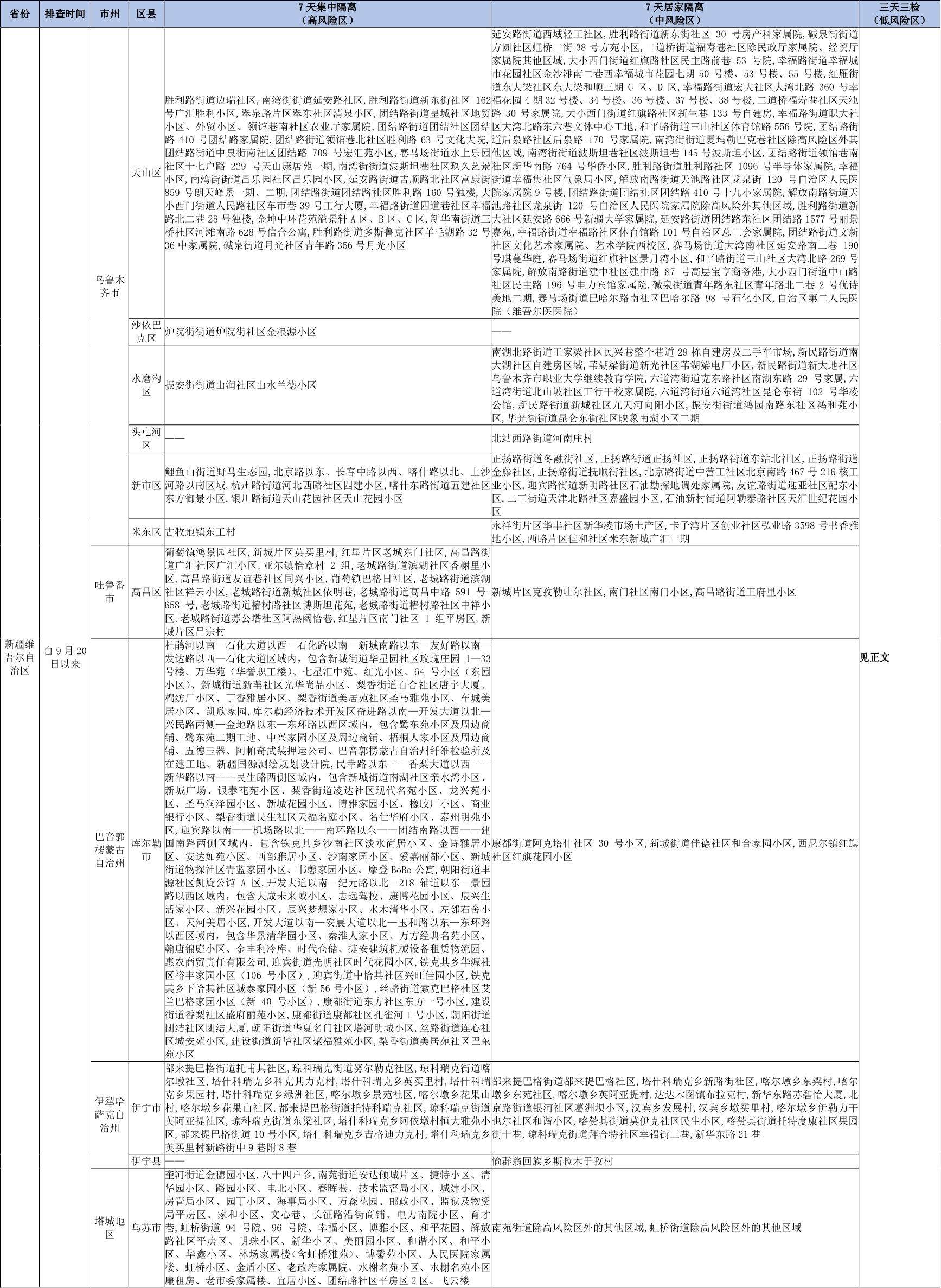 对近7日内有新疆维吾尔自治区除乌鲁木齐市、巴音郭楞州、伊犁州、吐鲁番市以外的地区旅居史的来(返)川人员,自抵川当日起实施3天居家隔离(如不具备居家隔离条件,或不接受同住人员共同实施居家隔离管控的,实施3天集中隔离)。居家隔离期间,足不出户,上门采核酸。