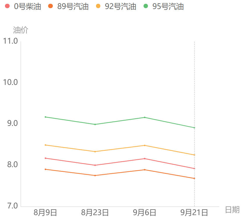 ➤2022南宁95号汽油价格走势图【更新时间:2022.9.21】