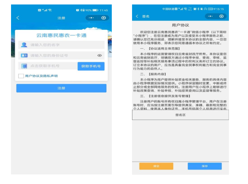 进入小程序之后,根据小程序提示,填写相应的用户信息并输入个人签名后完成用户注册。