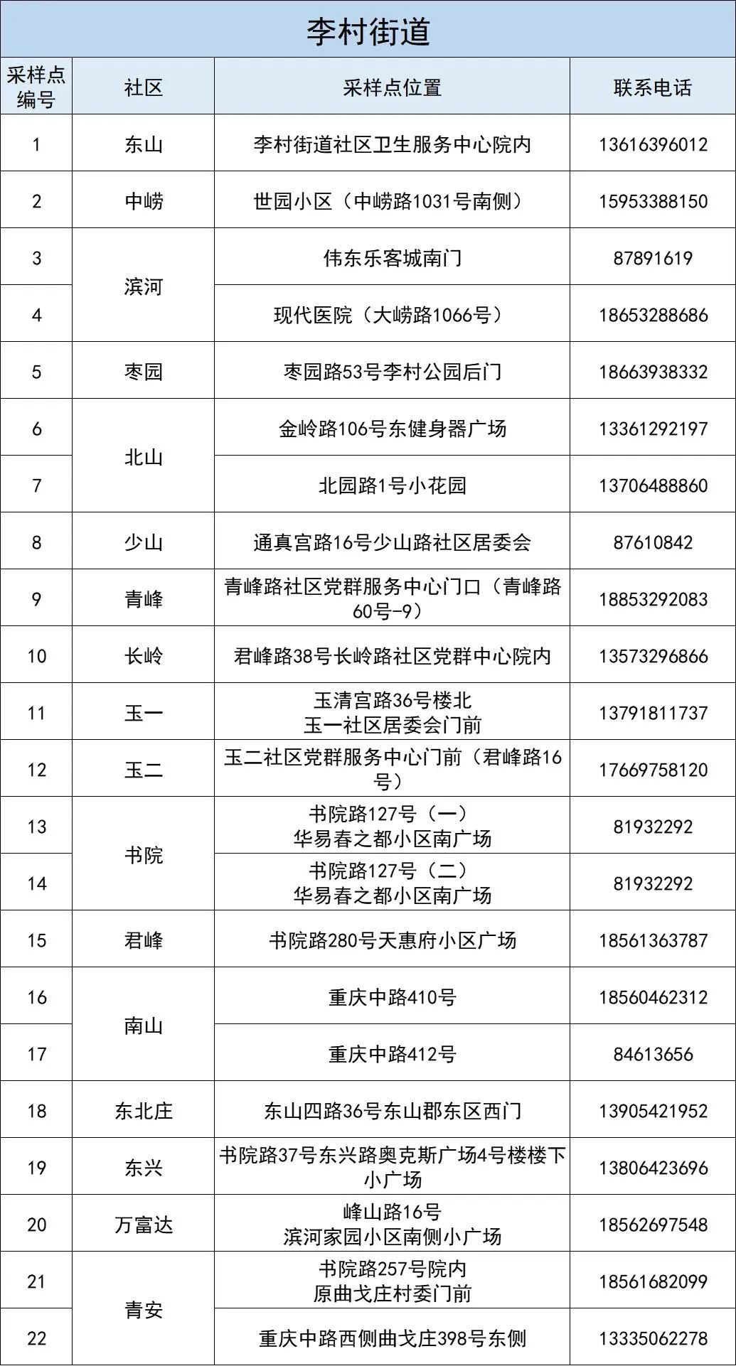 李沧区“核酸检测服务圈”采样点详情见本通告下方。