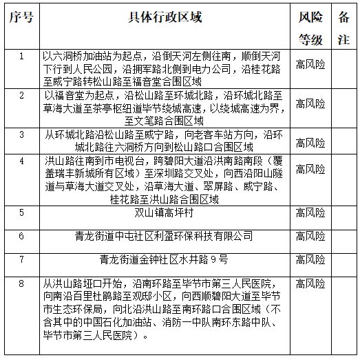 附件:毕节市七星关区高风险区一览表