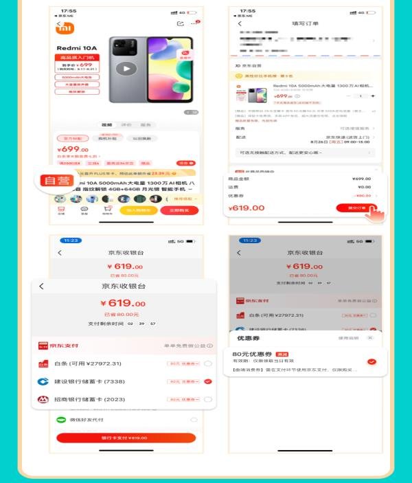 京东APP内使用:用户在京东APP内购买京东指定实物类商品及京东小时购指定实物类商品时,在支付环节选择京东支付作为支付方式(使用京东支付需要用户完成实名认证),并点击相应支付工具后的红色优惠券标签,选择要使用的消费券进行支付,即可完成抵扣。