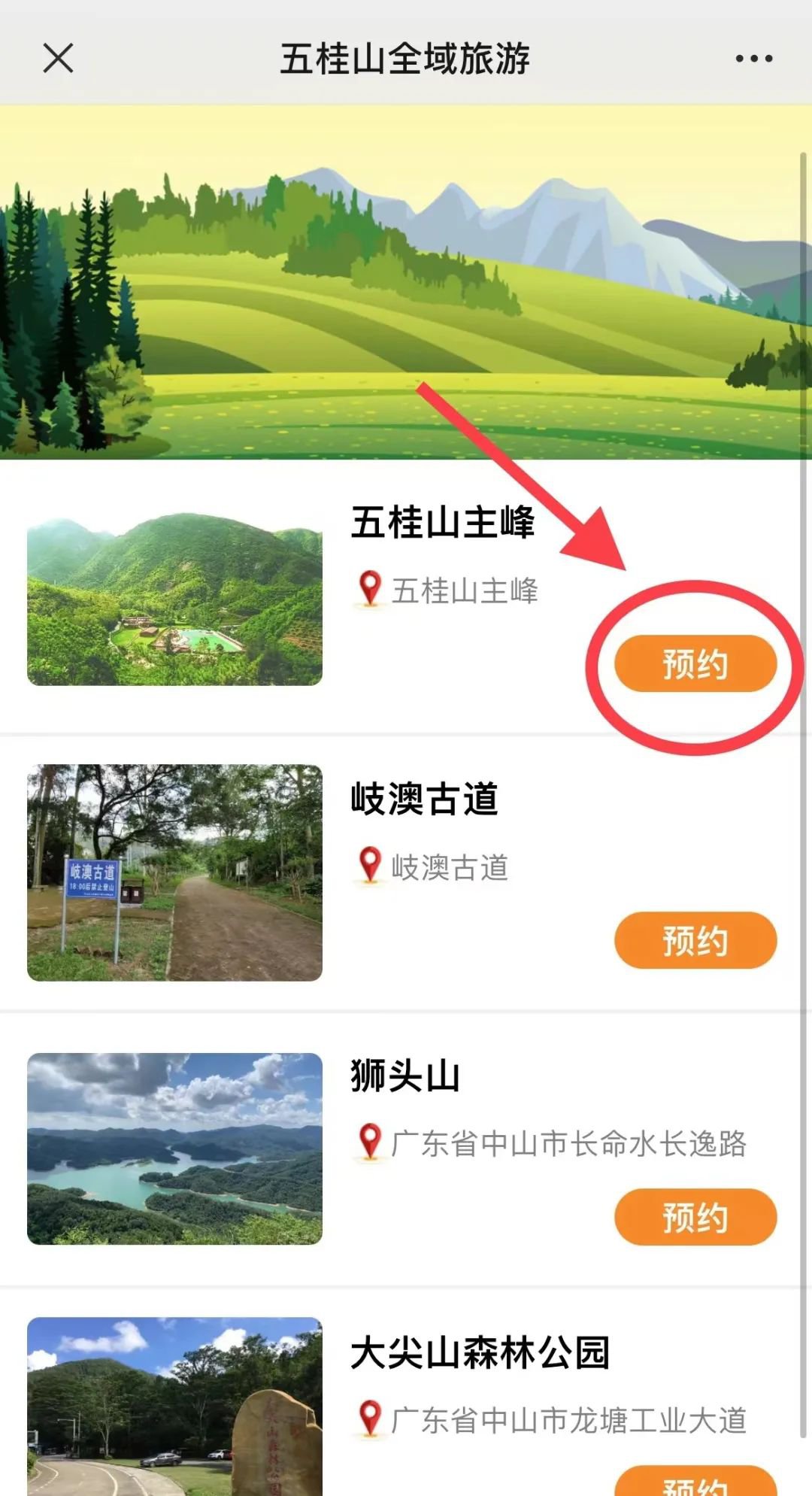 中山五桂山街道登山线上预约操作流程