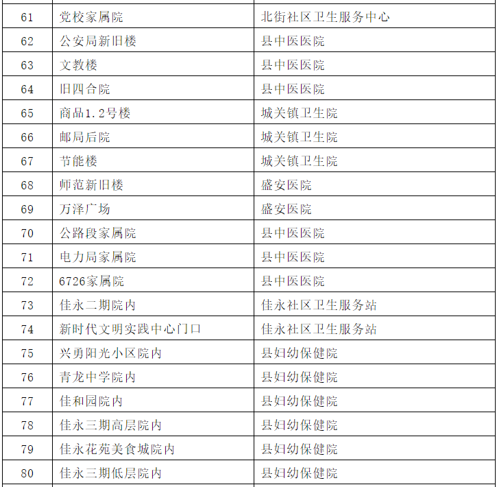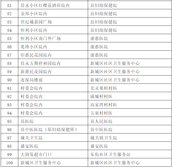 1、依托城关镇35个网格,共设立100个核酸筛查采样点。(采样点名单附后)