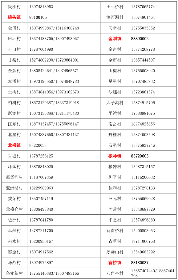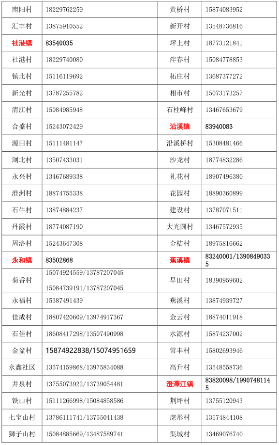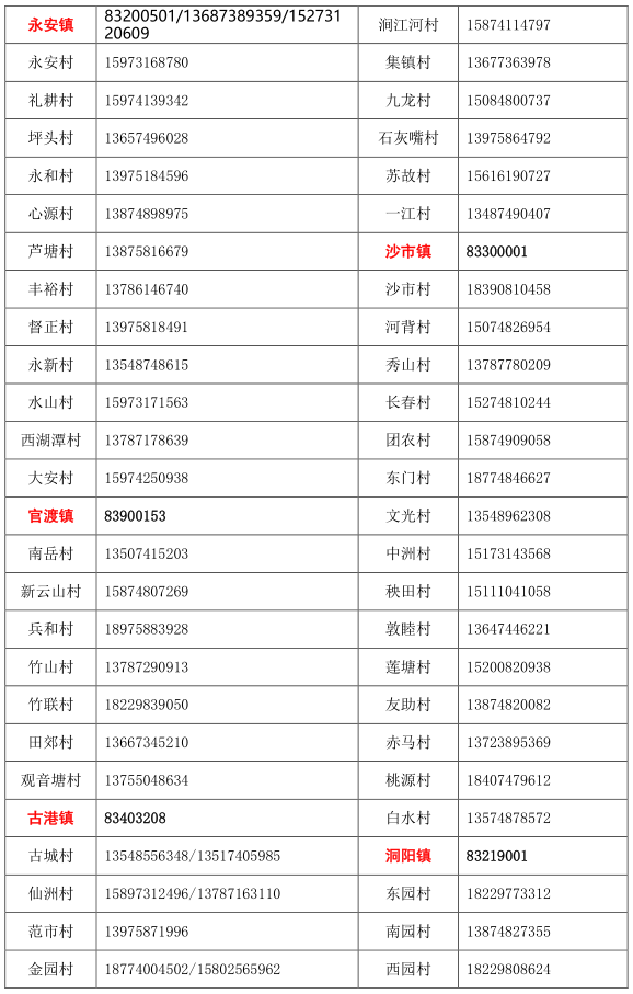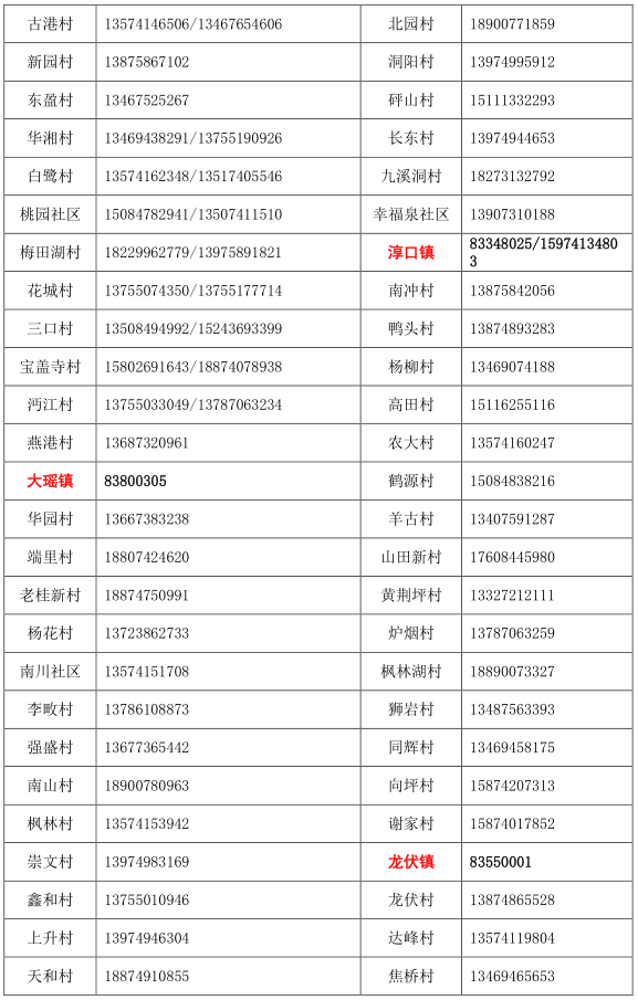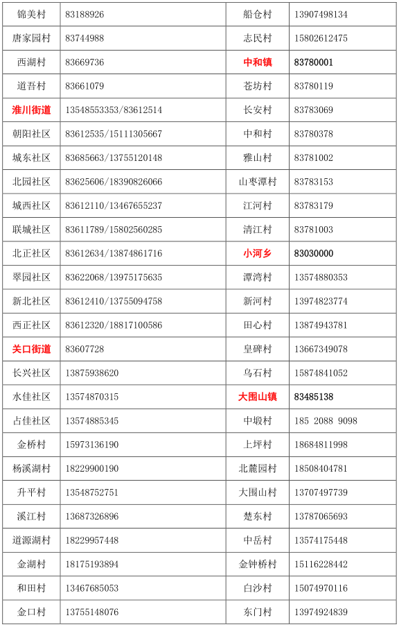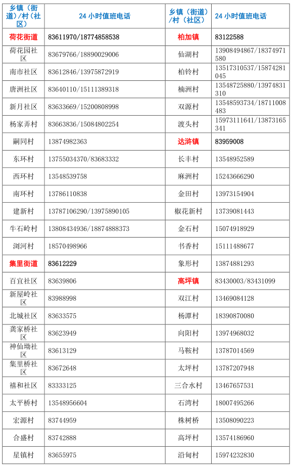 浏阳市各乡镇(街道)/村(社区) 疫情防控值班和报备电话: